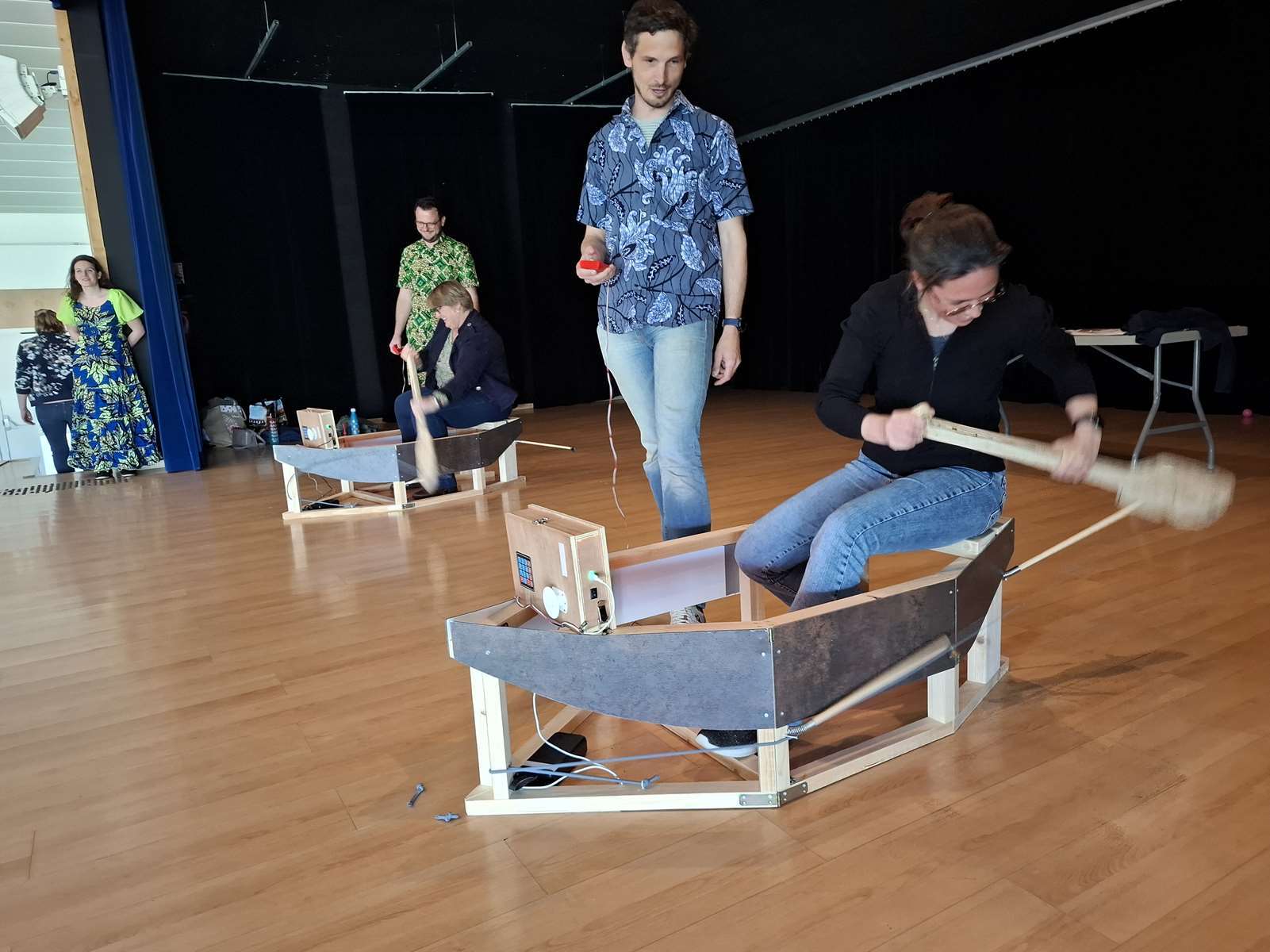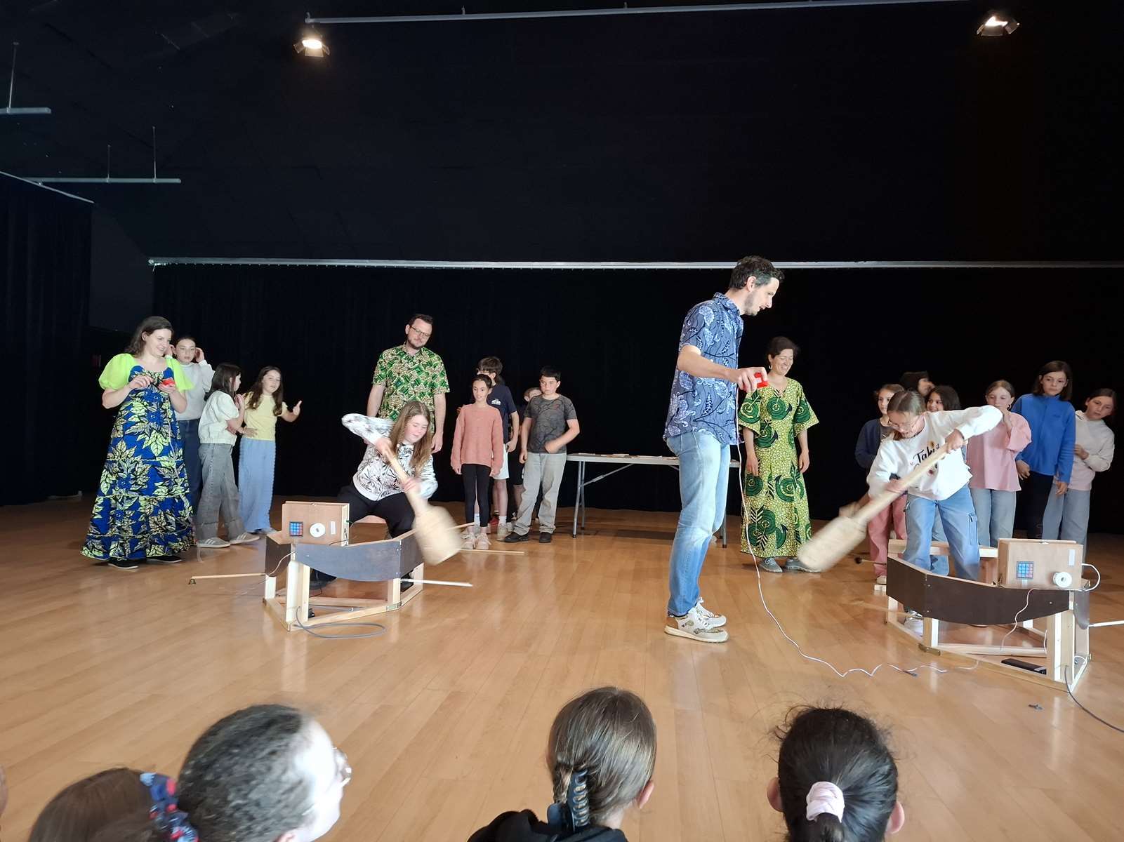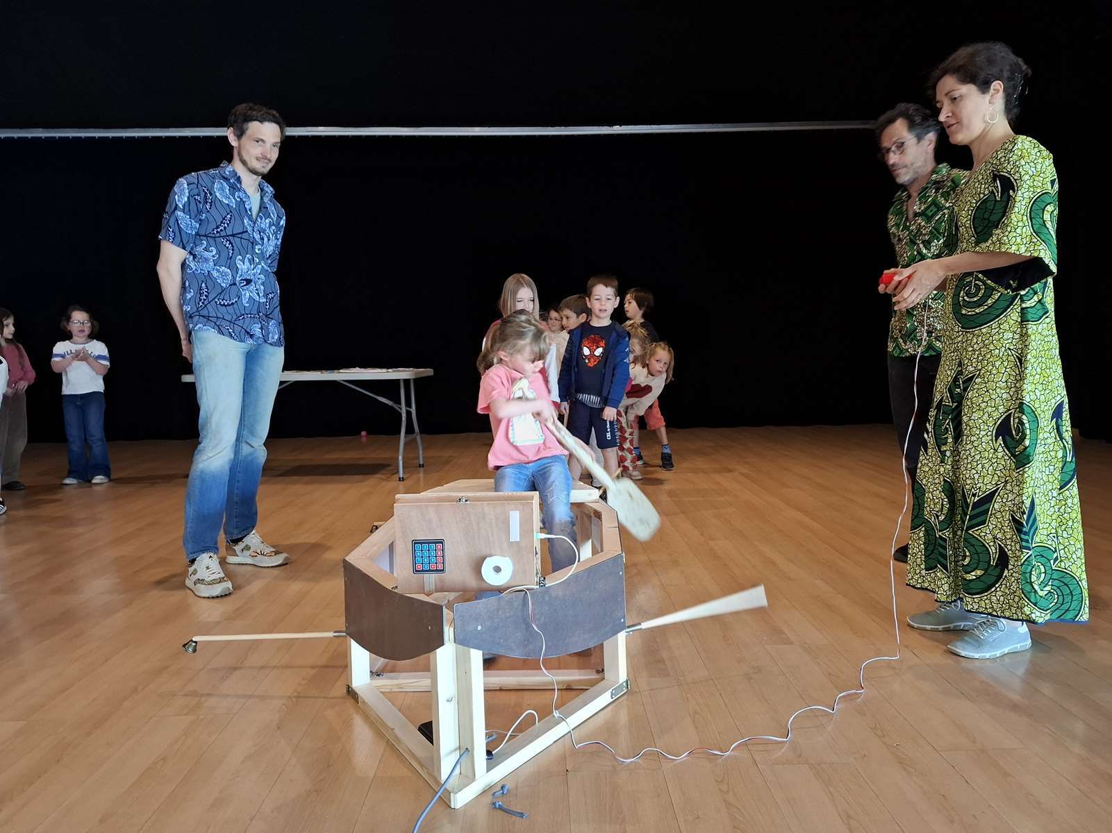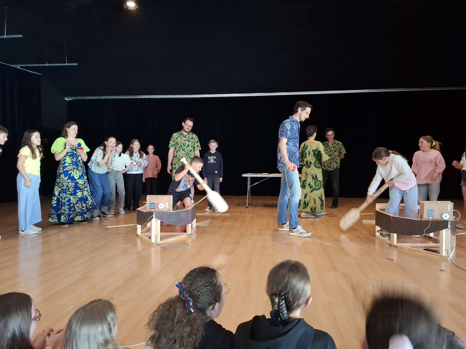 Dans la salle des Ribandeaux, les membres de Bonvolema avaient installé deux maquettes de « pirogue », pour nous permettre de relever un défi : pagayer le plus vite possible en un temps donné. Ce défi nous a beaucoup plus. Chaque enfant a reçu un petit diplôme du défi pirogue.