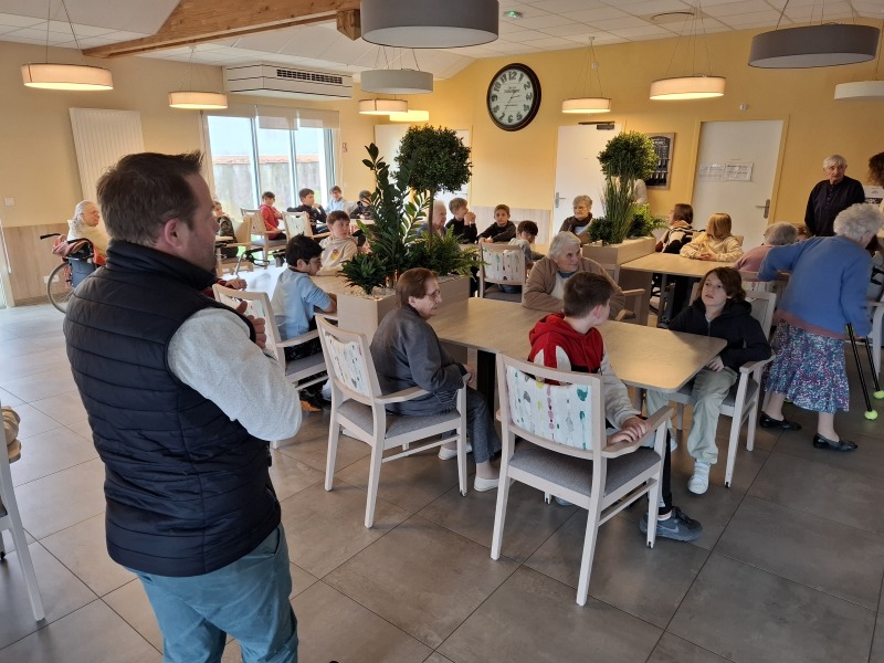 Jeudi 16 janvier 2025, la classe de CM2 s’est rendue à la maison de retraite « Le Havre du Payré » pour vivre une étape collective du Passeport du civisme : participer à un après-midi de jeux de société intergénérationnel.