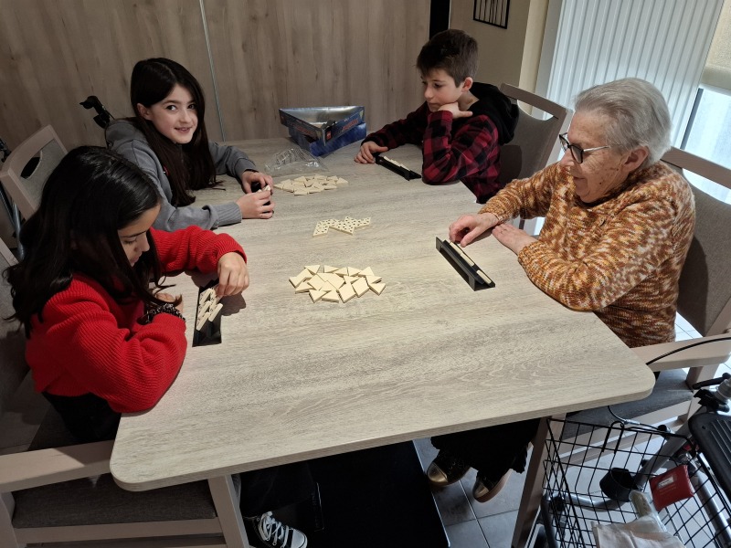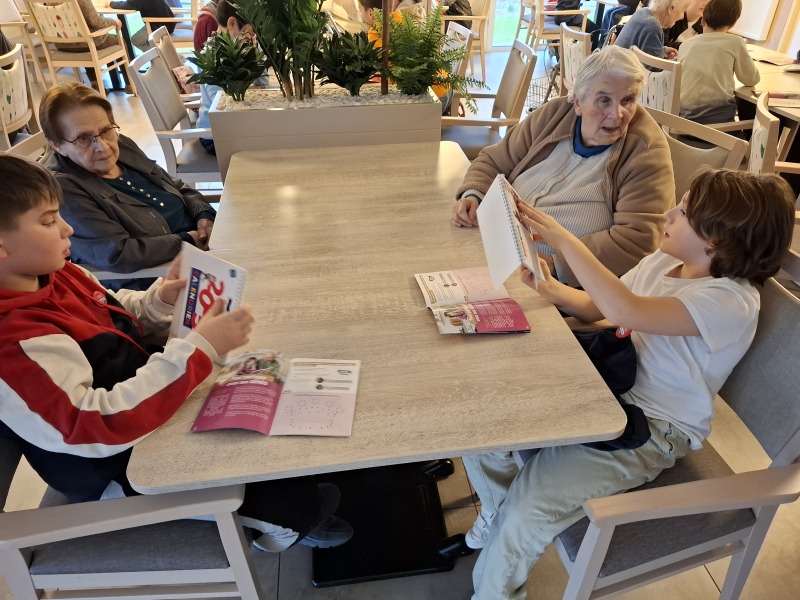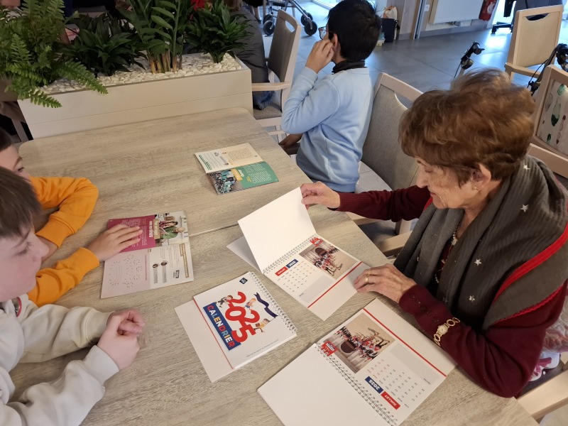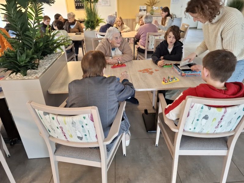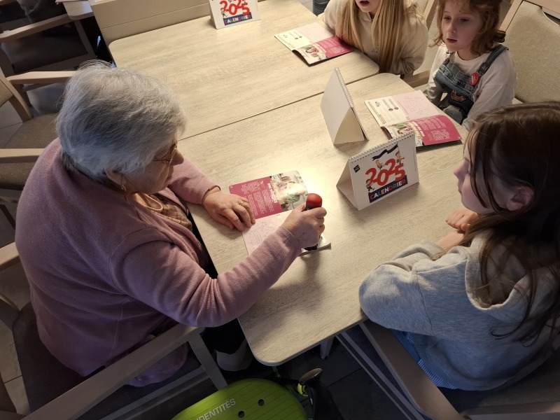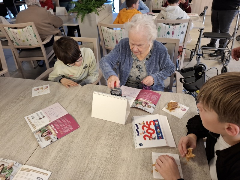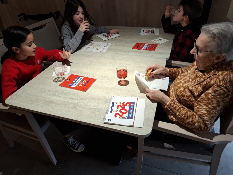 Durant ce temps, les élèves ont fait connaissance avec des résidents en discutant, puis des jeux de société se sont déroulés sur différentes tables. Chaque enfant a offert à une personne âgée un calendrier 2025, préparé par la ville de Talmont et personnalisé par des dessins d’élèves.