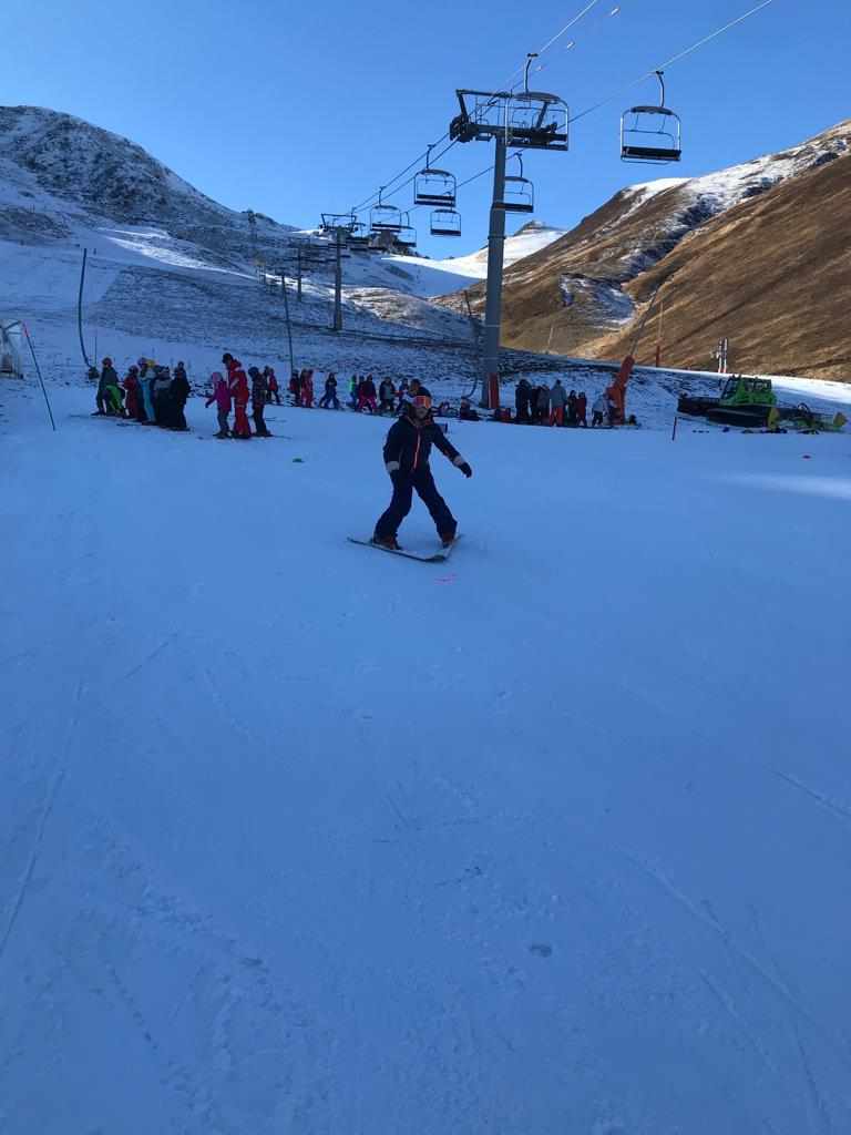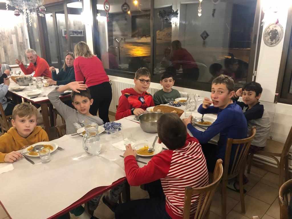 Quelques nouvelles fraîches de notre séjour dans les Pyrénées : la neige et le soleil étaient finalement au rendez-vous pour cette première journée. Nos débutants maitrisent déjà le chasse-neige, quant aux confirmés, ils ont eu l’occasion de découvrir la poudreuse en altitude. Les chambrées sont de plus en plus organisées… et rangées. Demain, nous reprendrons les joies des glissades et des chutes « maîtrisées » dans la bonne humeur ! Pour l’heure, c’est repos bien mérité pour tout le monde.