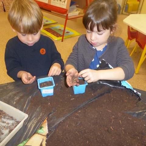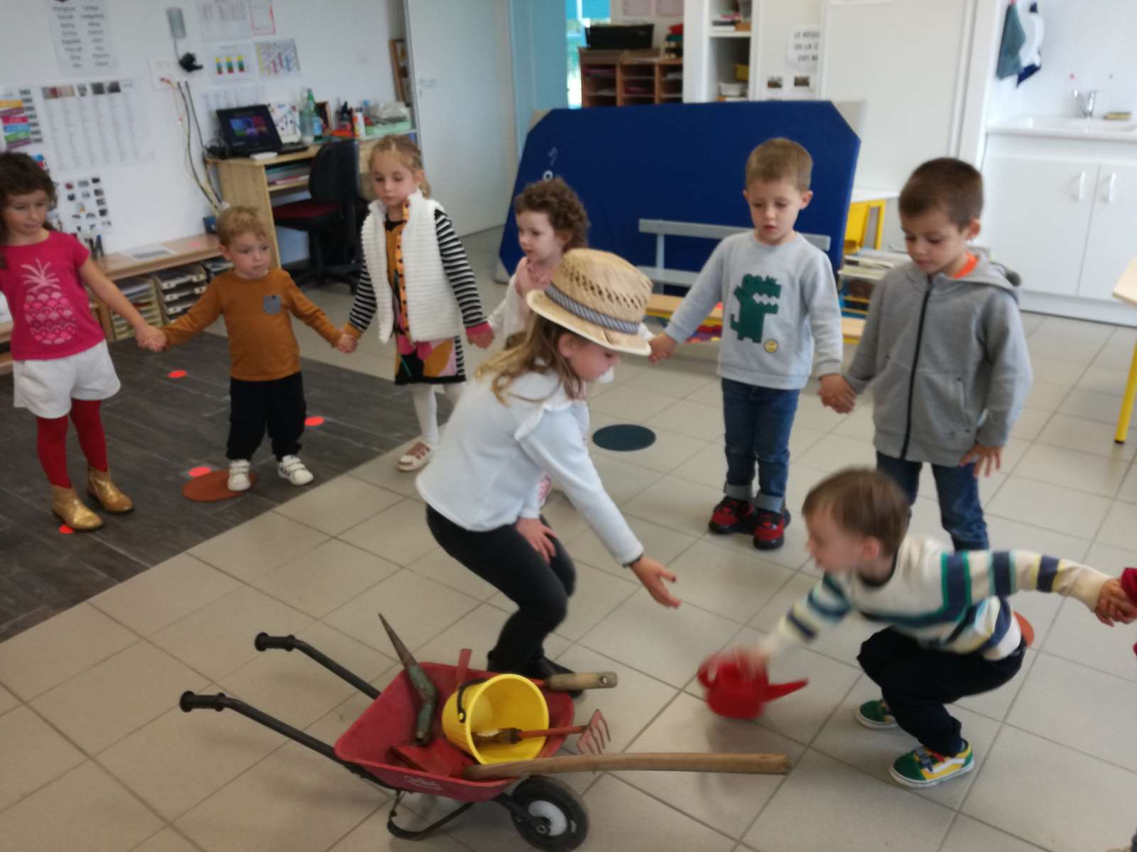 Les élèves de PS, PS/MS et MS/GS ont pris beaucoup de plaisir à VIVRE ENSEMBLE des ateliers sur le thème du jardin.