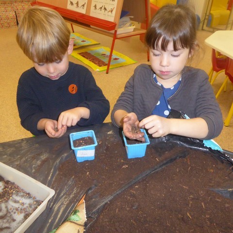 Au programme: Plantations de bulbes, Semis, Créations artistiques, Chasse aux outils, Parcours de brouettes…
