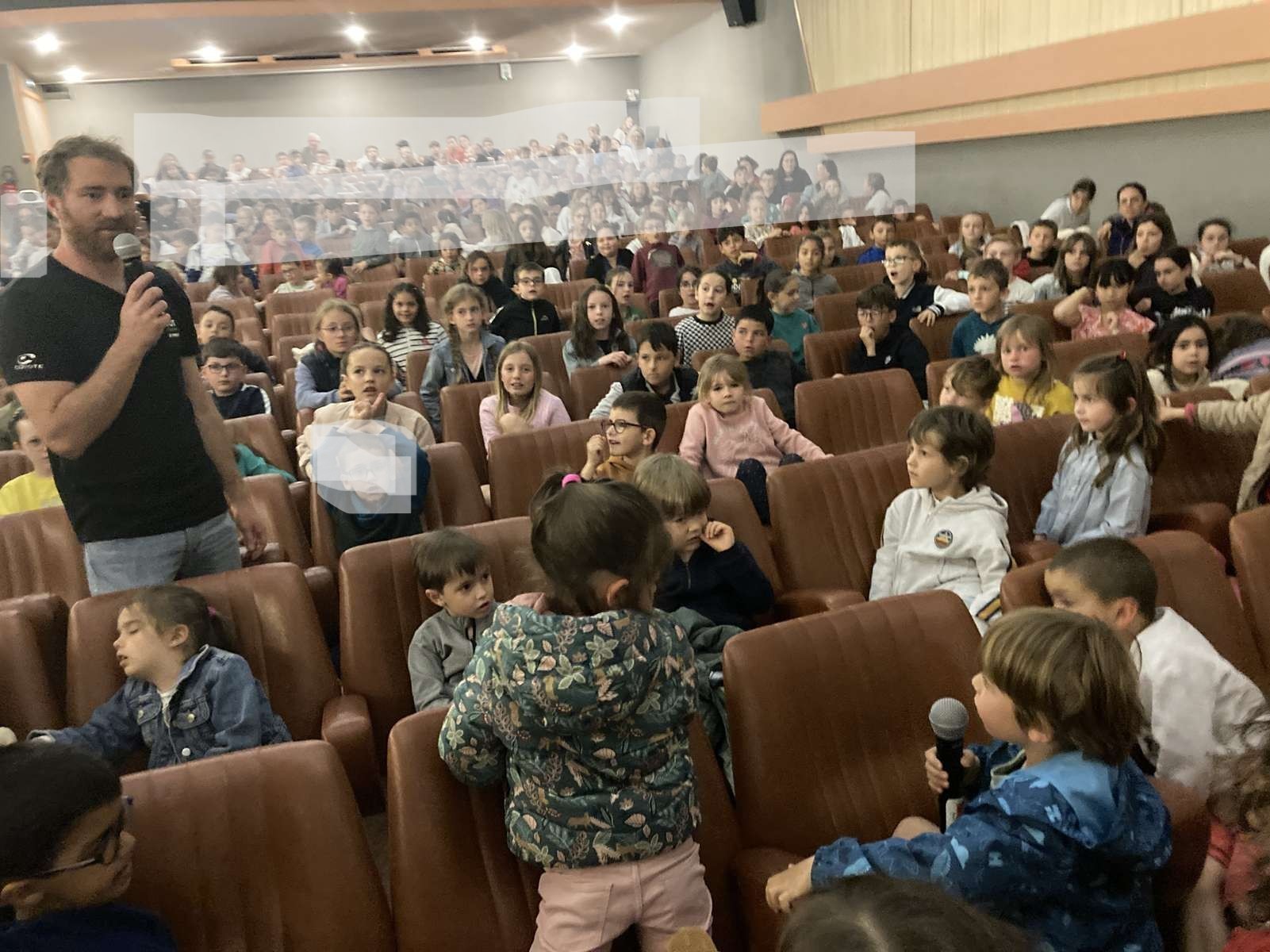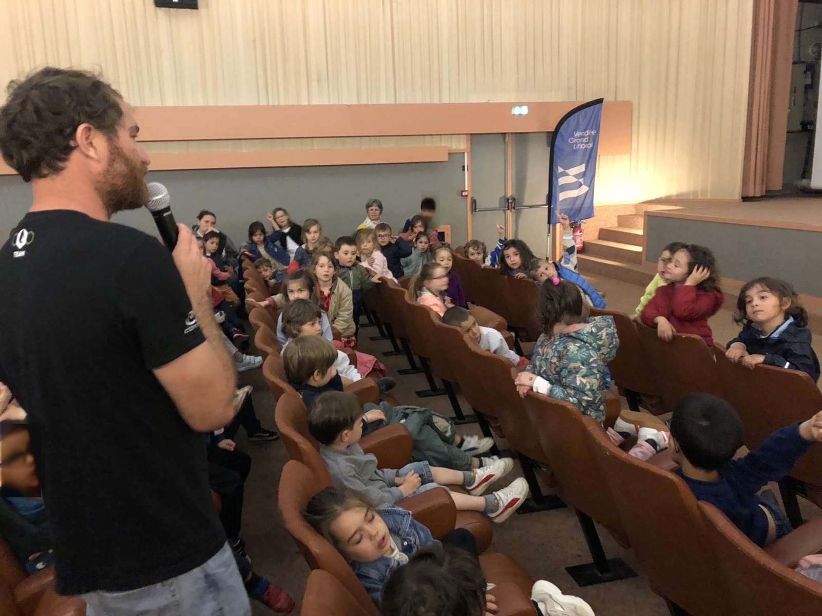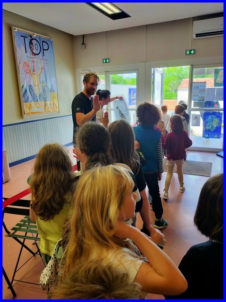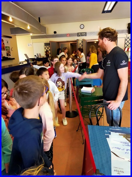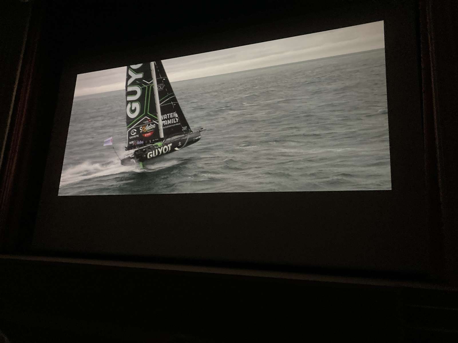 Aujourd’hui, lundi 28 avril, nous sommes allés au cinéma « Le Manoir » à Talmont-saint-Hilaire avec des élèves d’autres écoles de la communauté de communes pour regarder le film dans lequel Benjamin Dutreux présente son deuxième Vendée Globe.