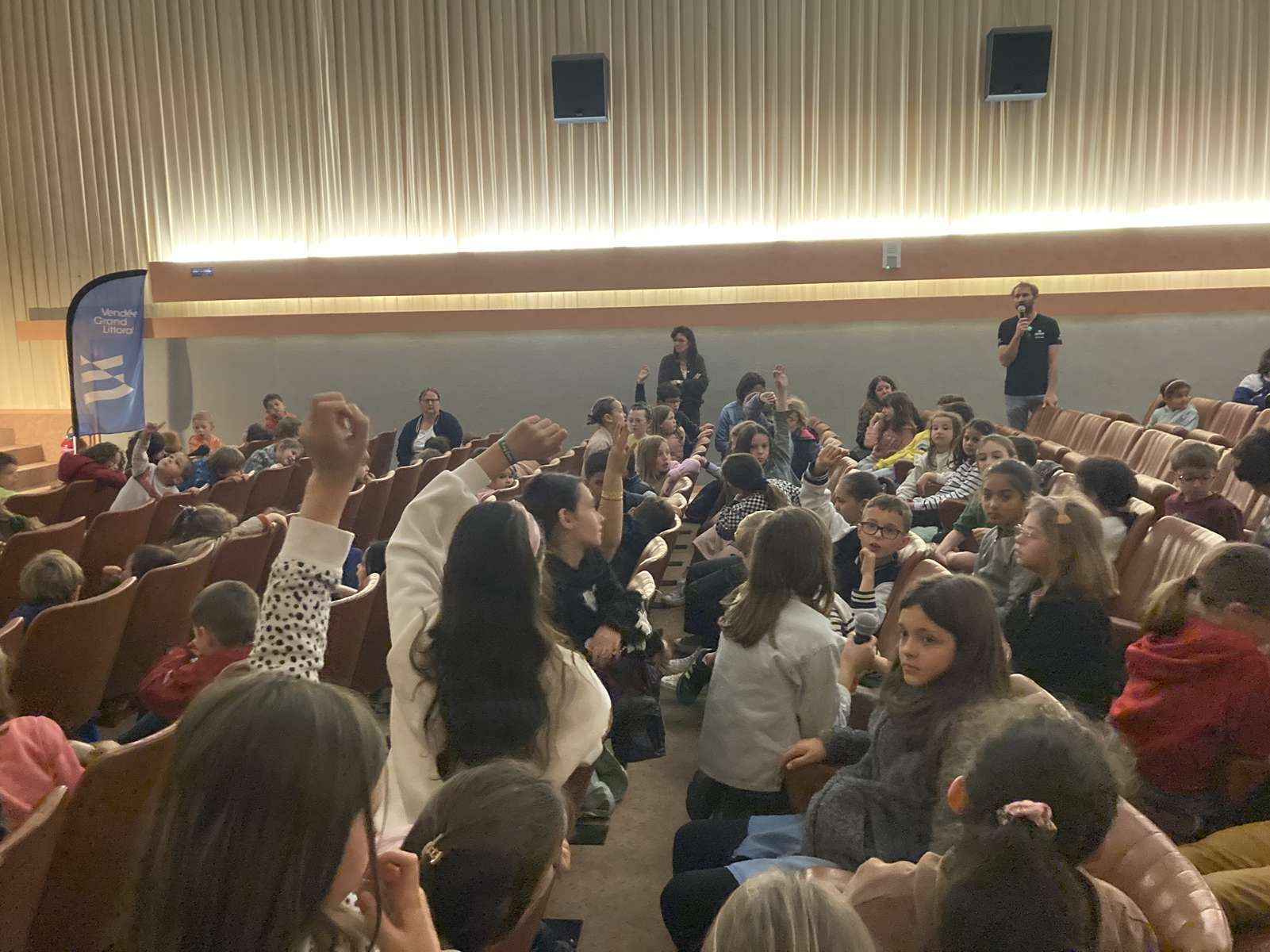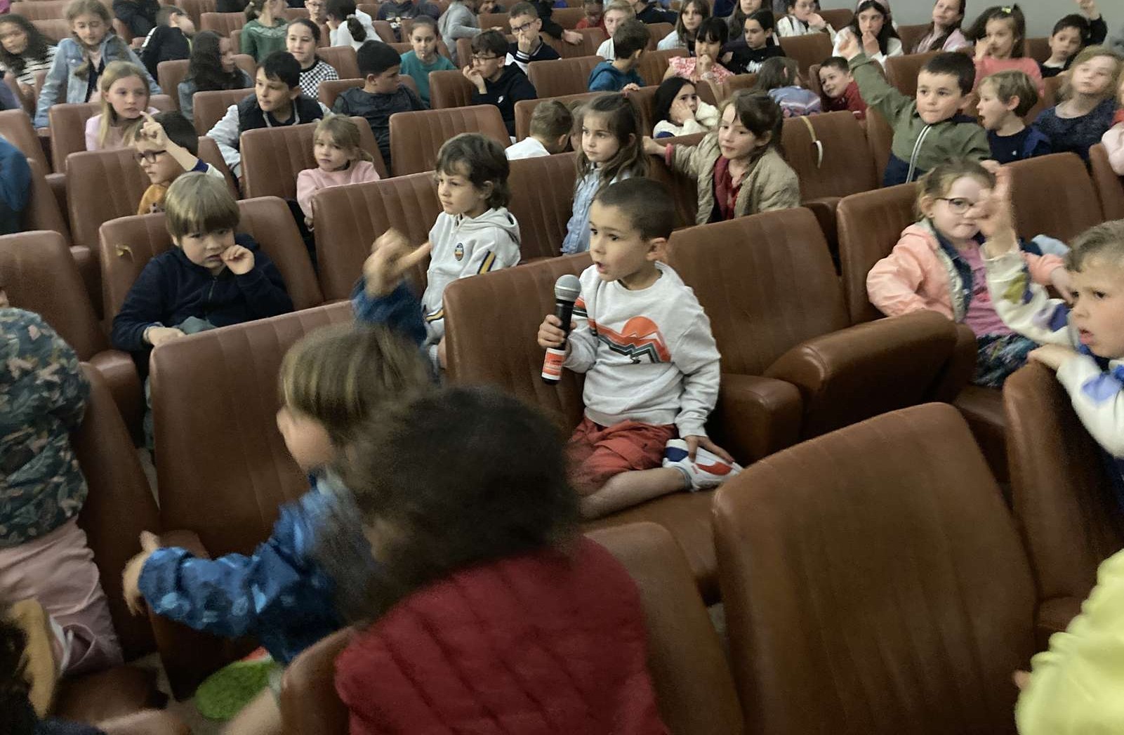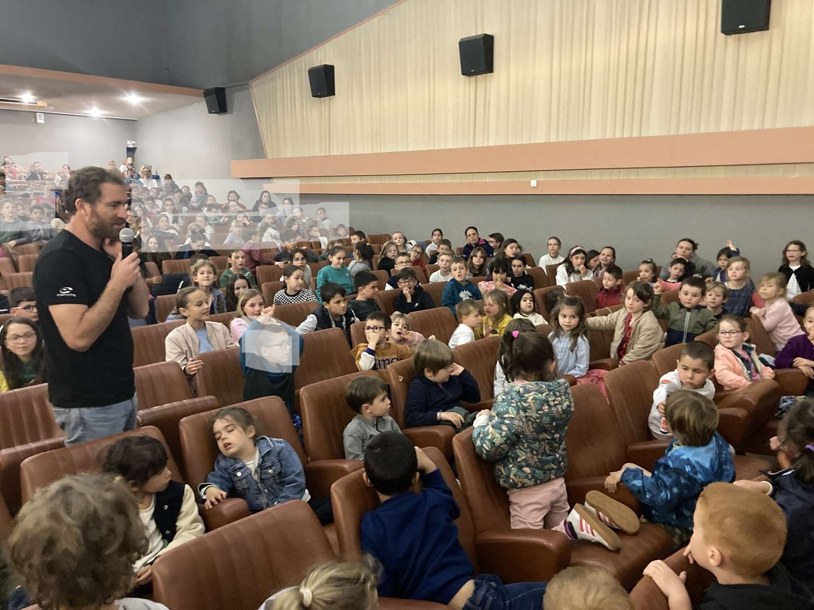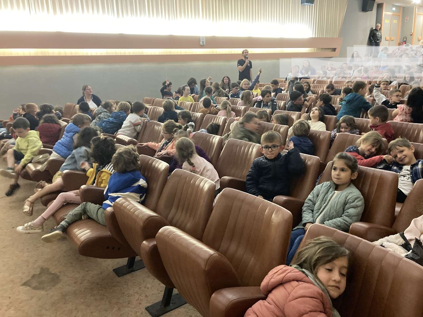 Aujourd’hui, lundi 28 avril, nous sommes allés au cinéma « Le Manoir » à Talmont-saint-Hilaire avec des élèves d’autres écoles de la communauté de communes pour regarder le film dans lequel Benjamin Dutreux présente son deuxième Vendée Globe.