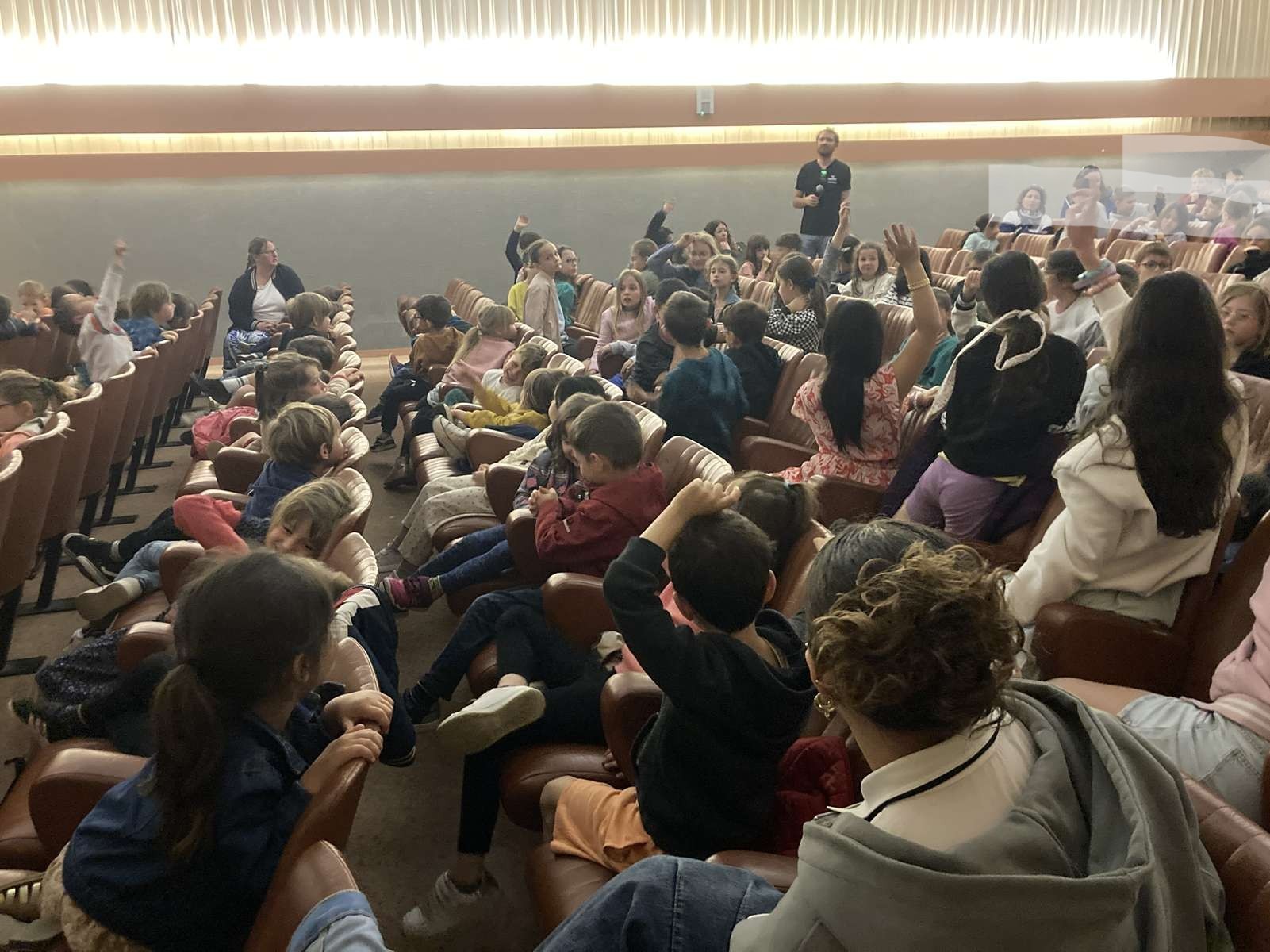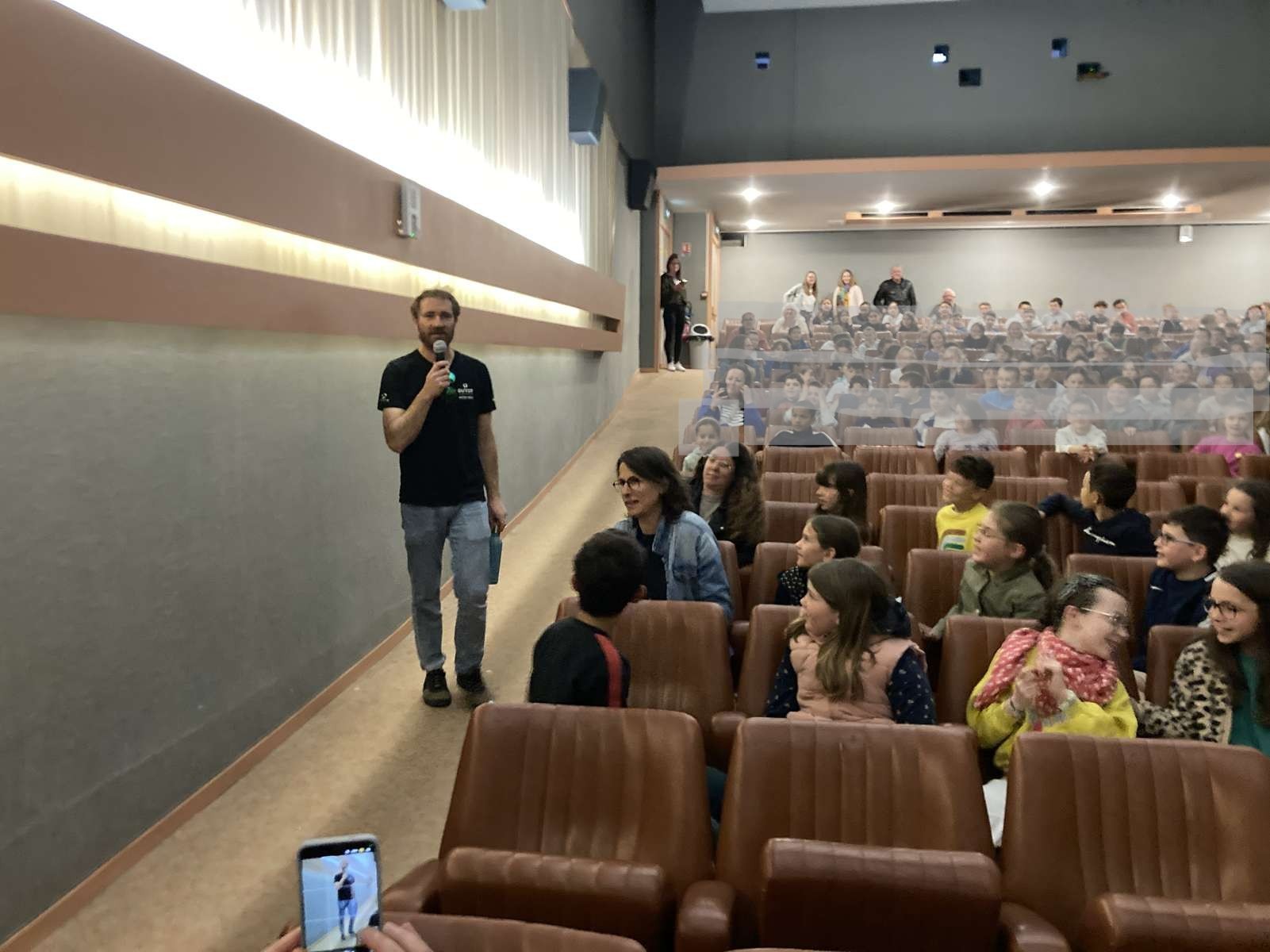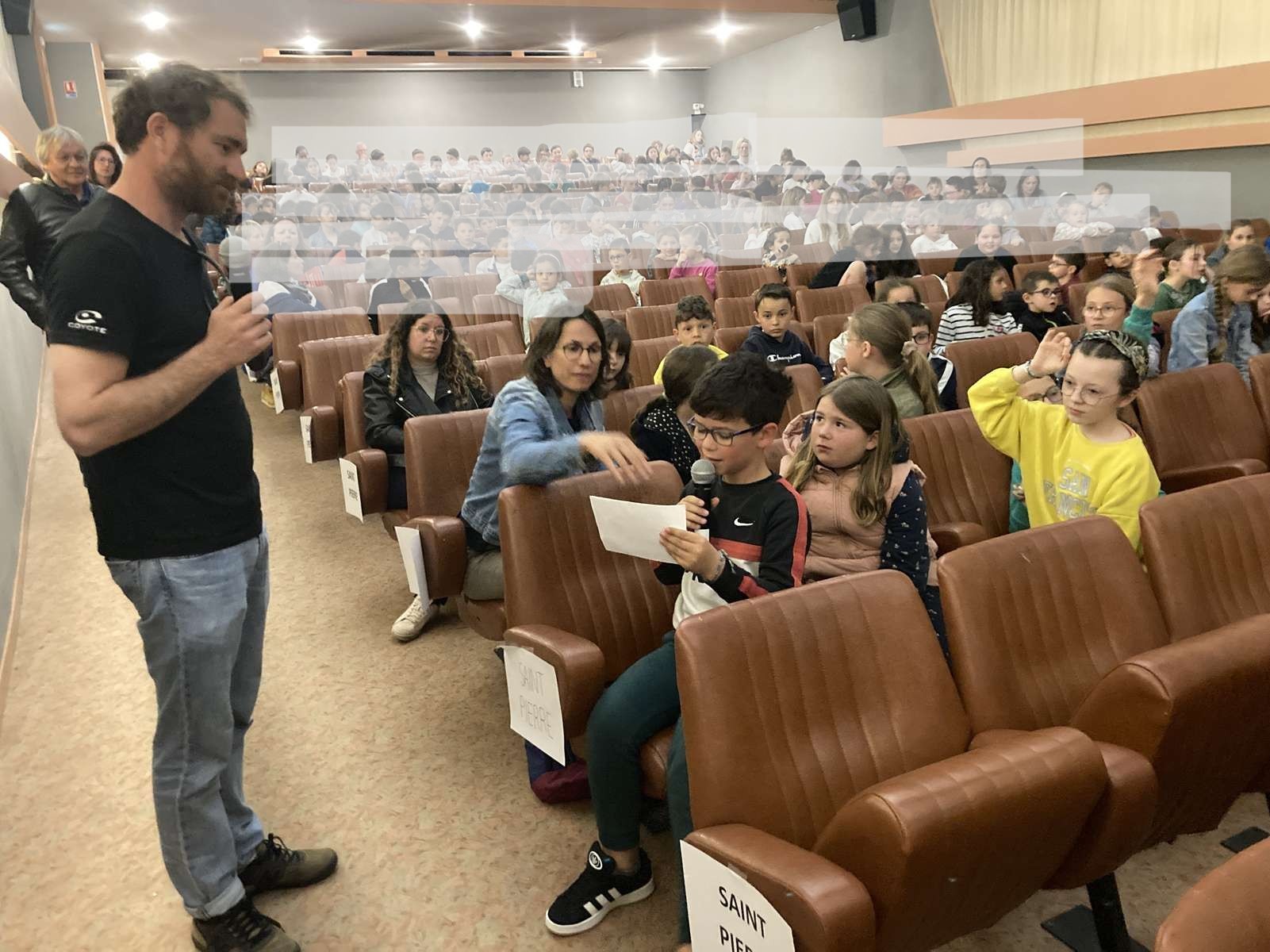 Une fois le film terminé nous lui avons posé des questions et il nous a répondu avec enthousiasme.