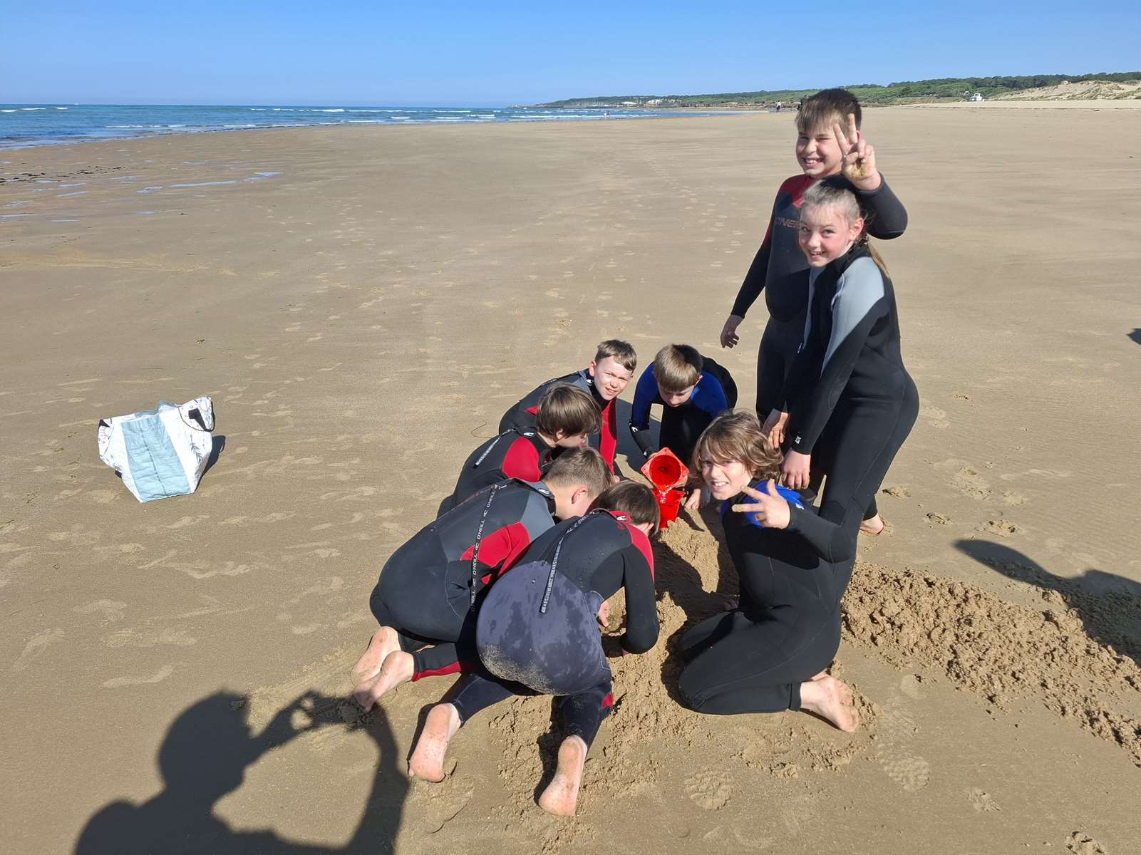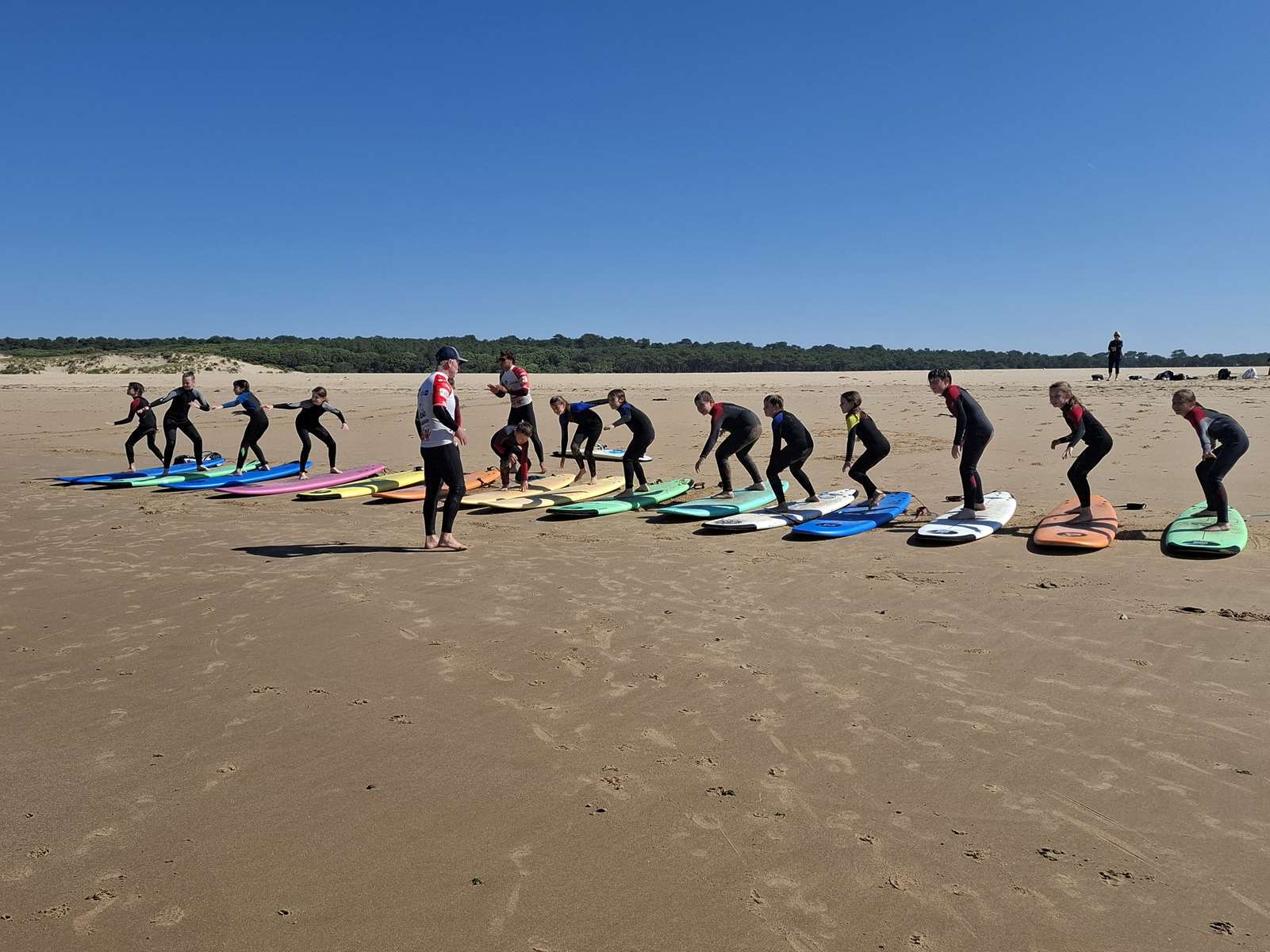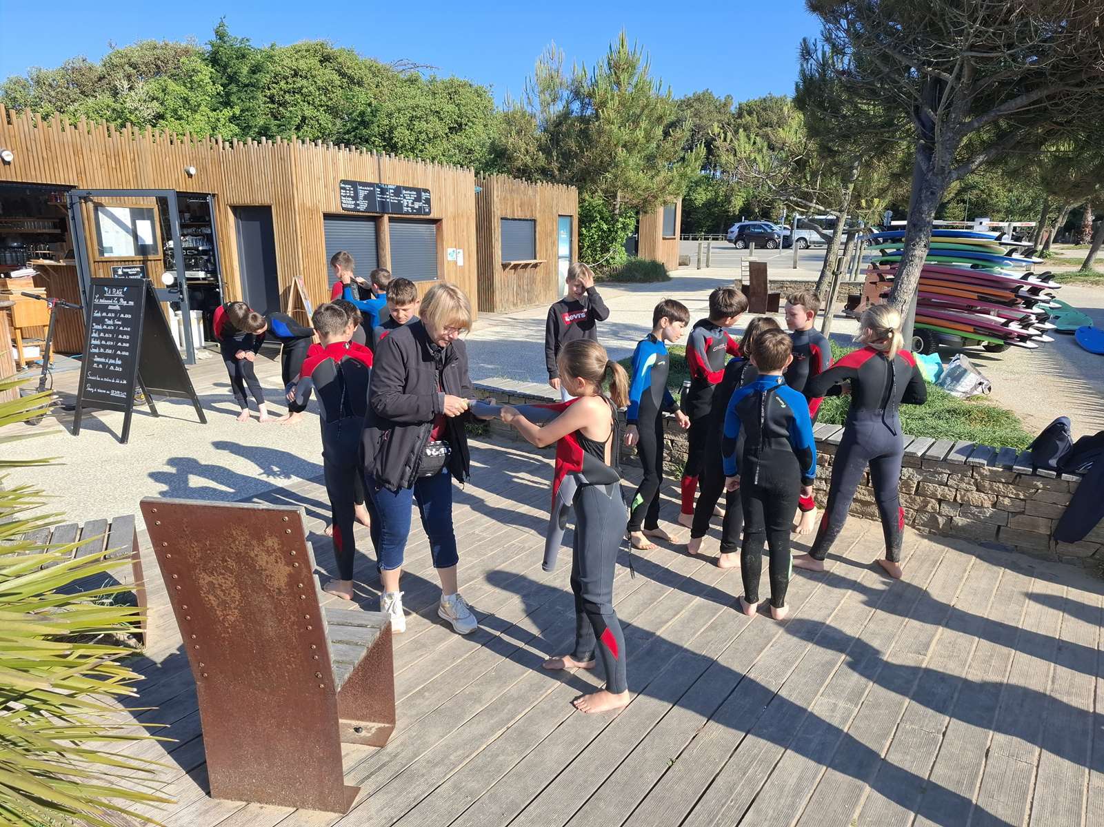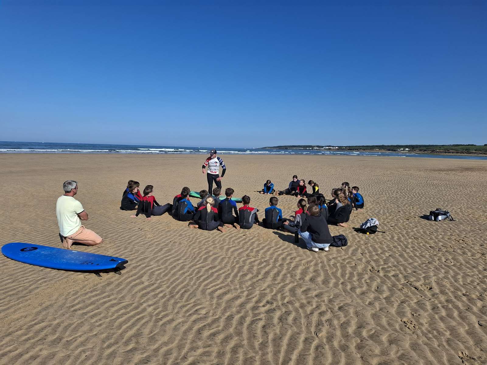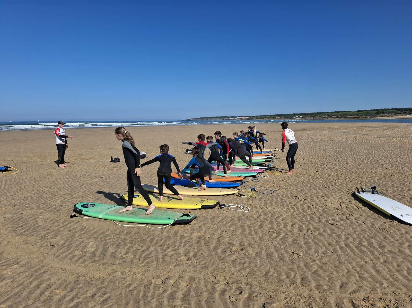Séance de Surf avec les CM2Par Jean-Michel JADAULT / 23 mai 2025 Voici quelques photos d’une séance de surf / glisse scolaire, avec Philippe et Adrien, les moniteurs de Vendée Surf School.Objectif de la séance : se mettre debout sur la planche. Les élèves progressent petit à petit !