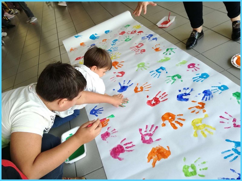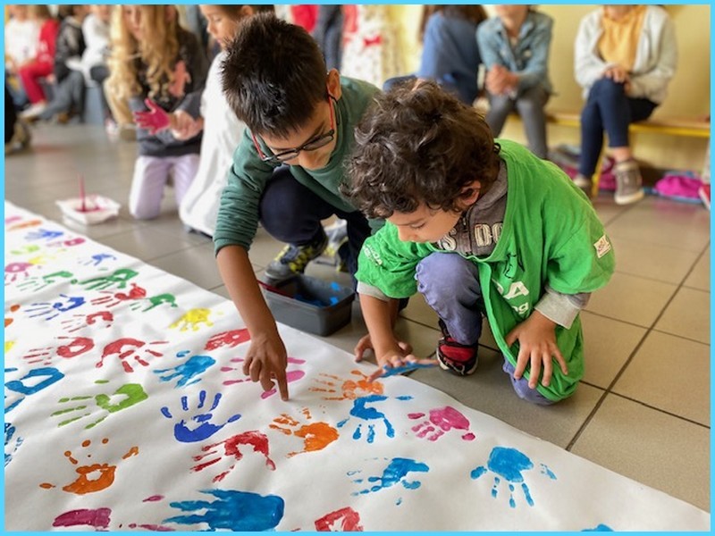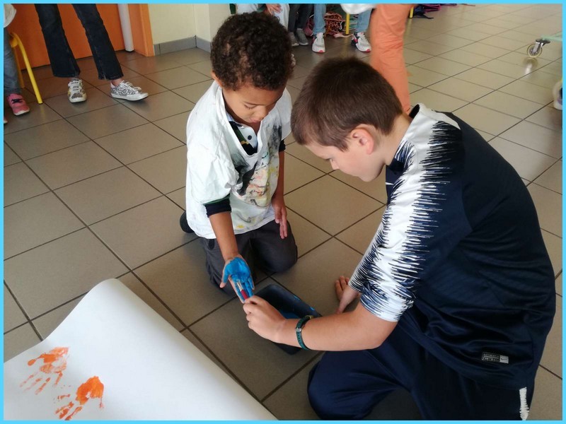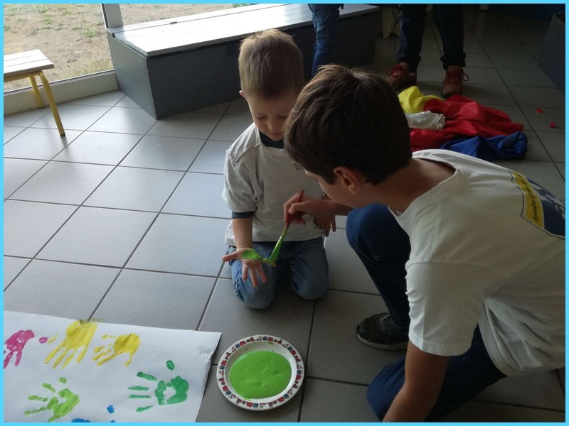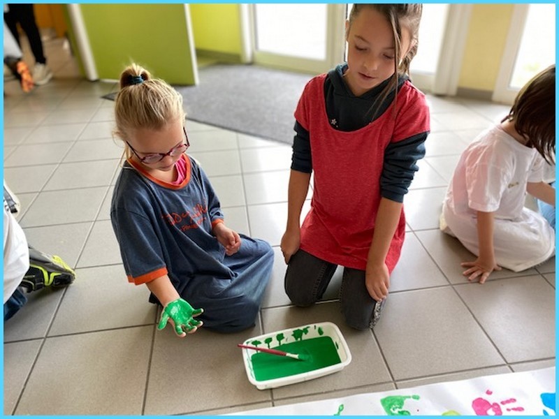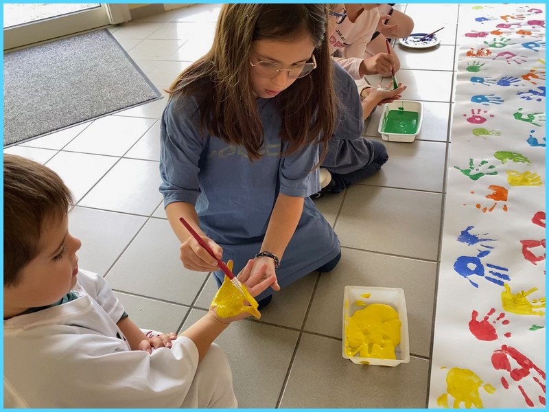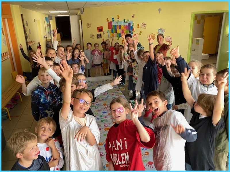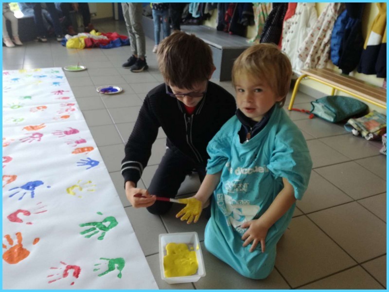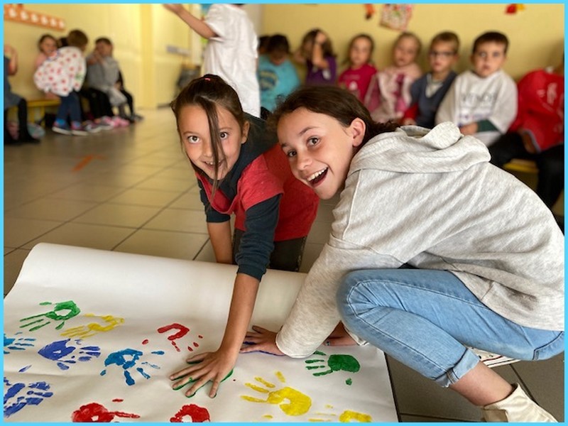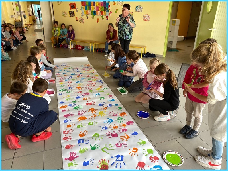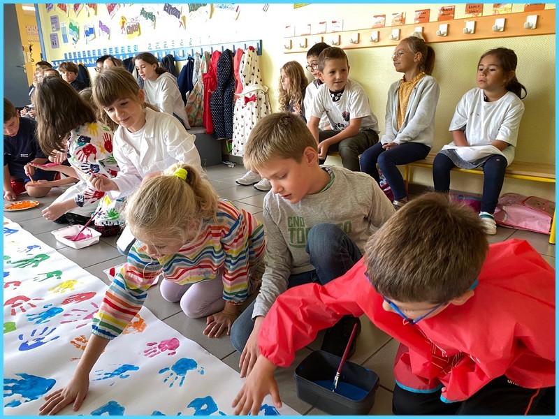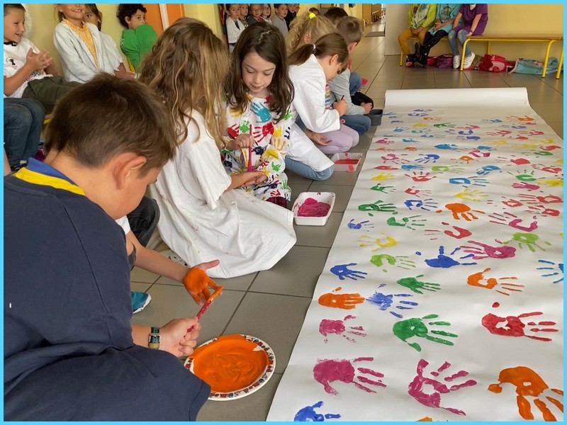 Cette année, toutes les classes de l’école St Pierre ont choisi de travailler autour d’un projet commun : l’acceptation des différences quelles qu’elles soient. Pour lancer ce projet, Jeudi 29 Septembre dernier, chaque enfant et adulte de l’école a posé son empreinte de main afin de réaliser une grande fresque collective. Nous avons pu admirer l’œuvre en fin d’après-midi autour d’un chant commun : Moi, je suis comme ça et alors ?