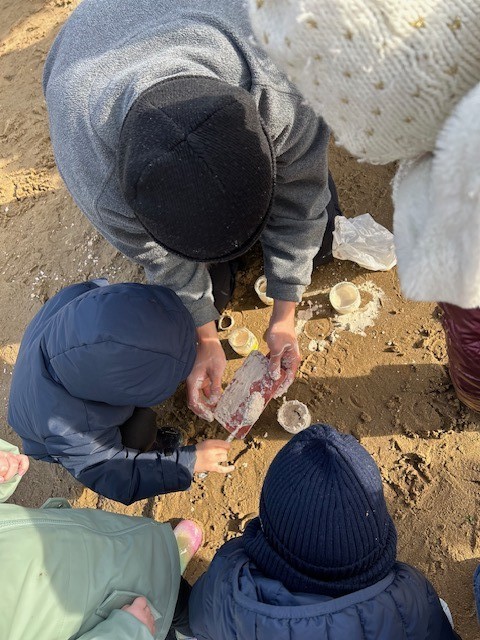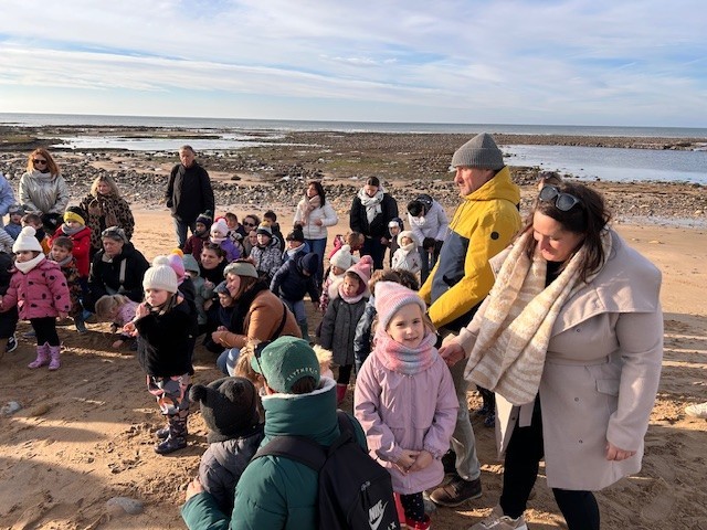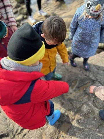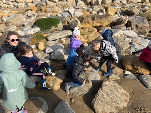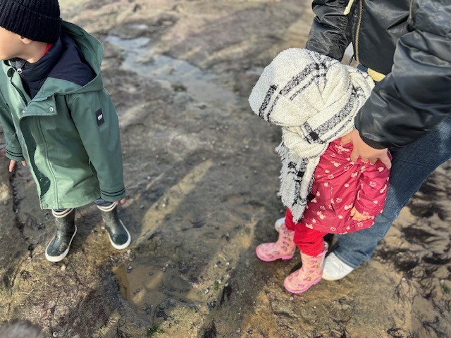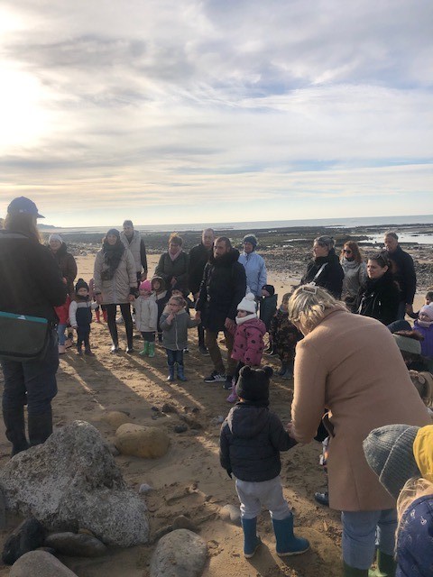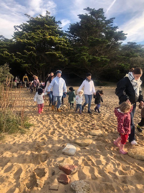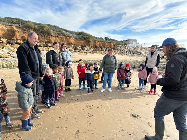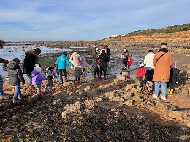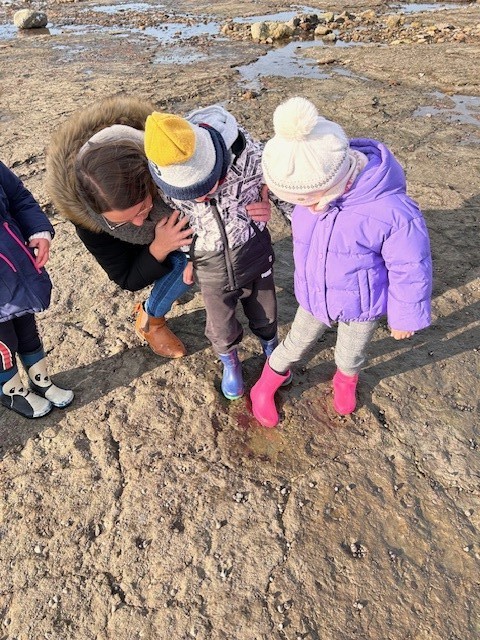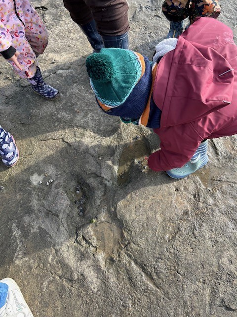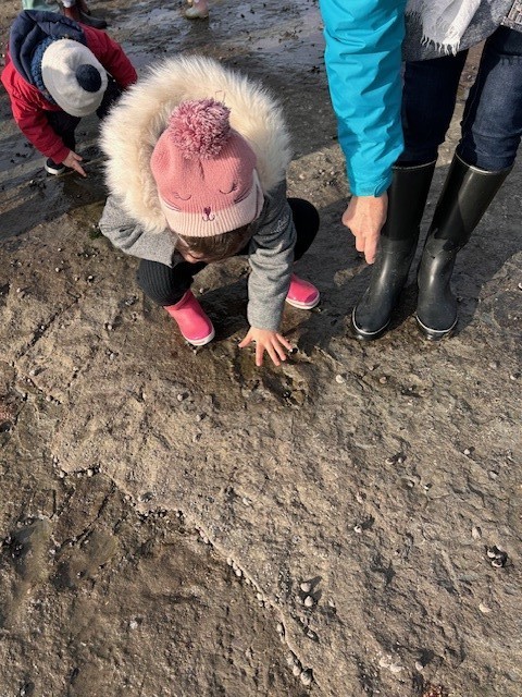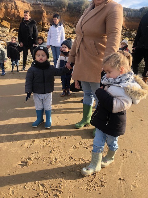 Le jeudi 14 Novembre, les classes de TPS/PS et PS/MS se sont rendues à l’Anse de la République pour observer les traces de dinosaures.
