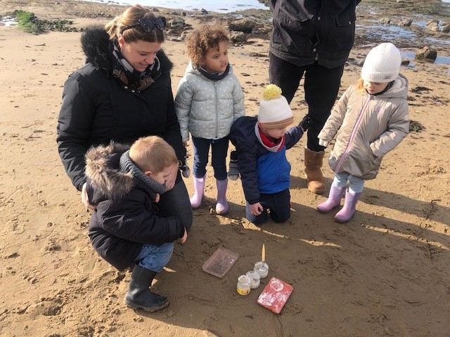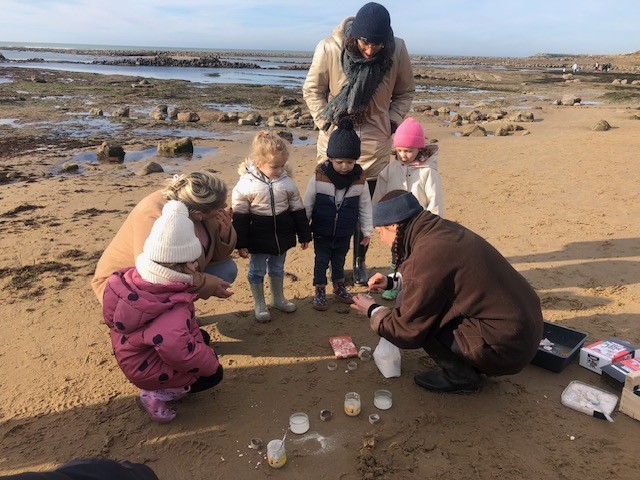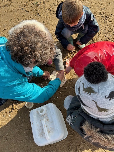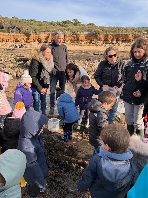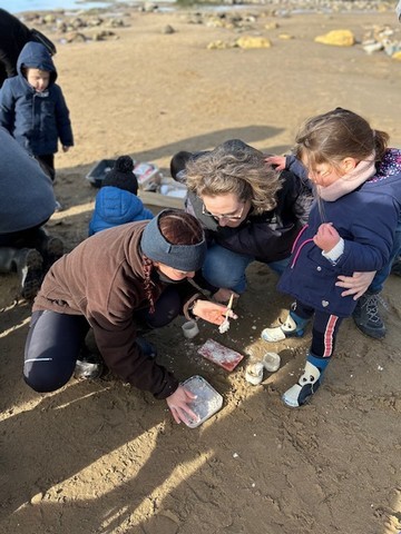 Avec l’association Estuaire, l’animation s’est déroulée en 3 temps: moulage d’empreintes, recherche et observation des traces sur l’estran et enfin pêche à pied. Une matinée riche en découvertes dont nous avons pleinement profité sous le soleil! Merci à tous les accompagnateurs.