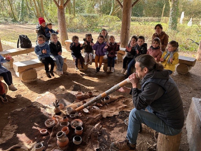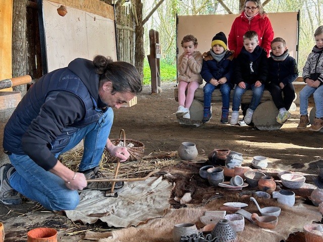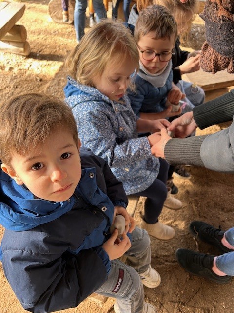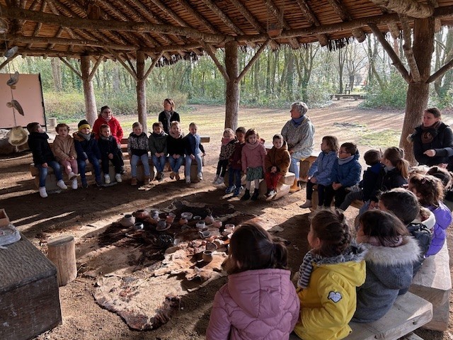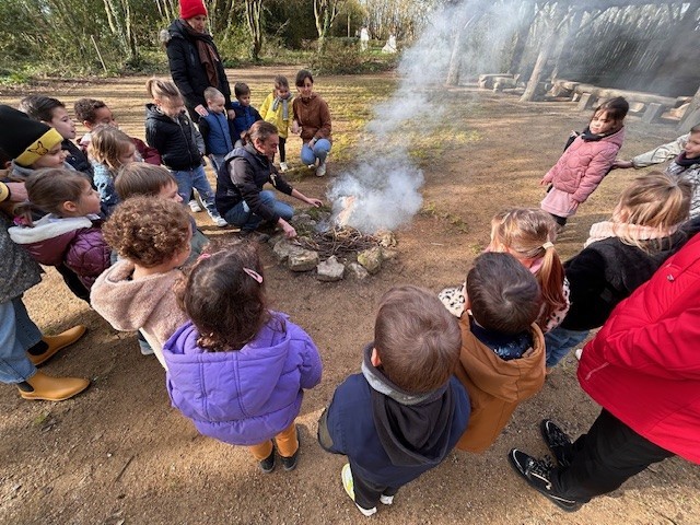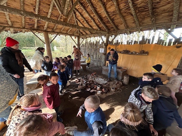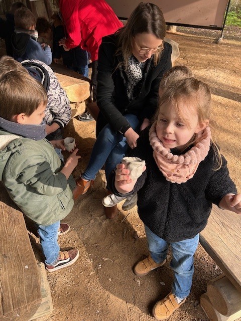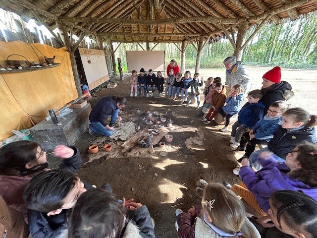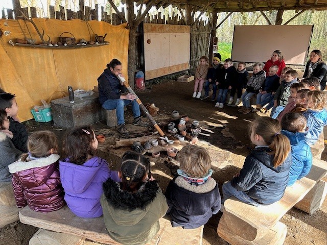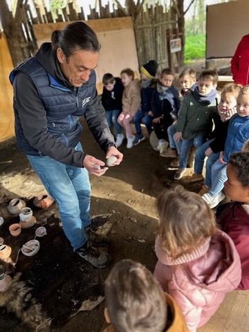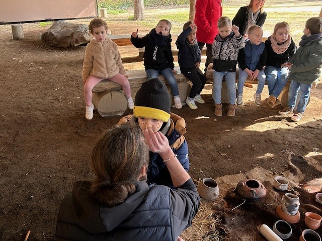 Le lundi 10 Mars, les classes de TPS-PS et PS-MS se sont rendues au préhisto’site du CAIRN pour découvrir deux animations sur la terre et sur le feu. Après avoir modelé et décoré un bol dans de l’argile, les élèves ont pu voir les animateurs allumer un feu à la manière des Hommes préhistoriques, le tout dans un décor de village du Néolithique.