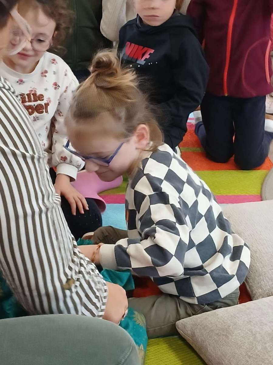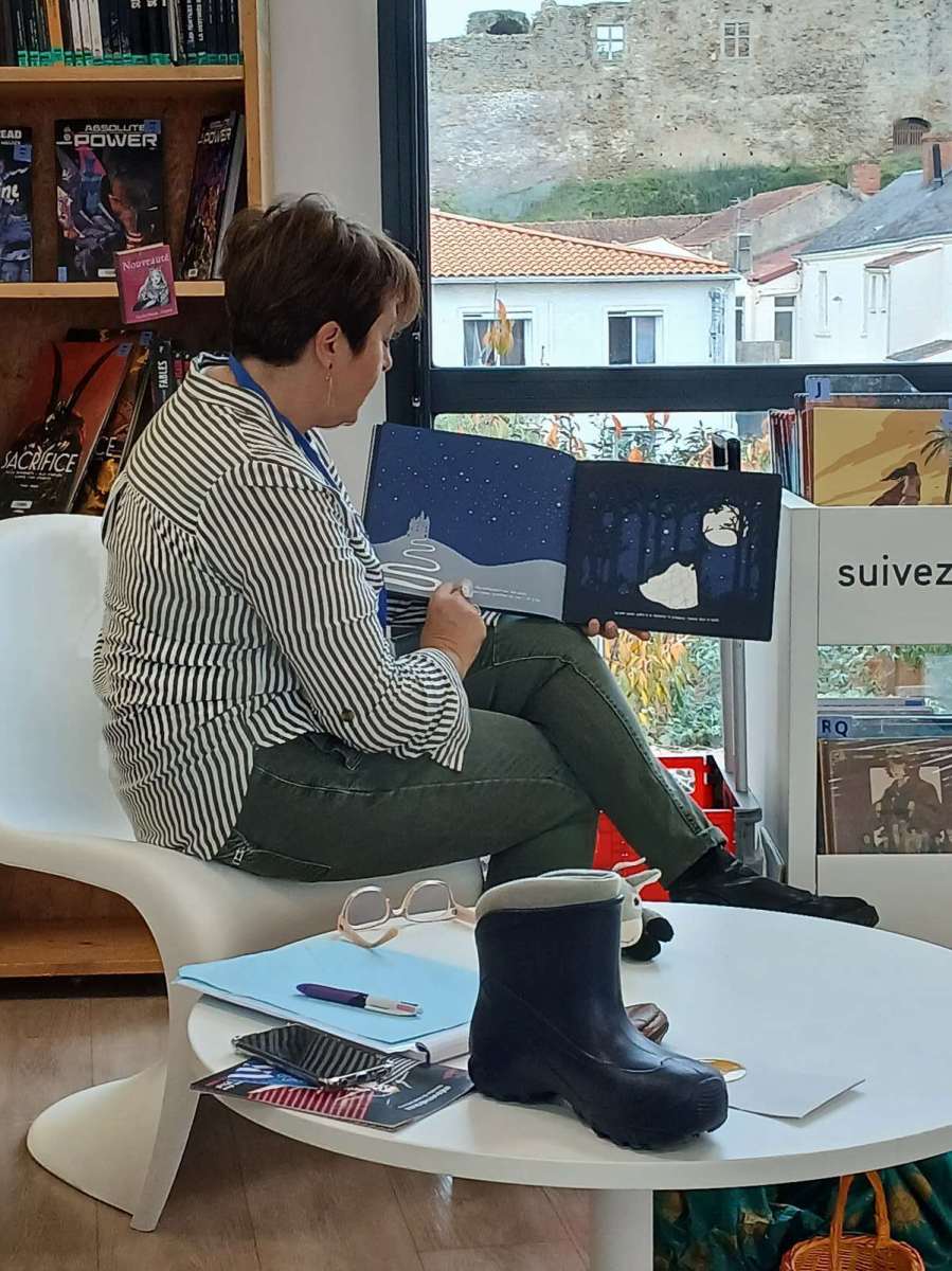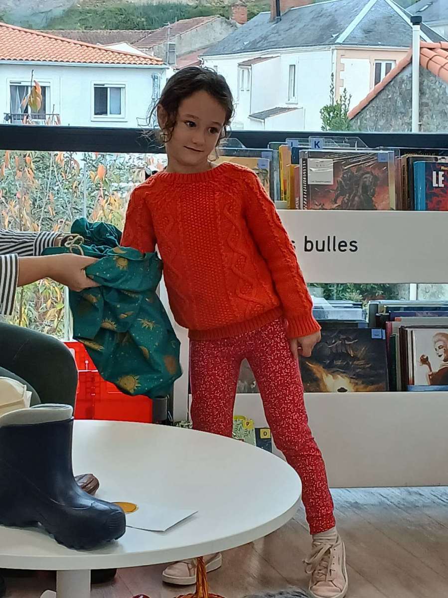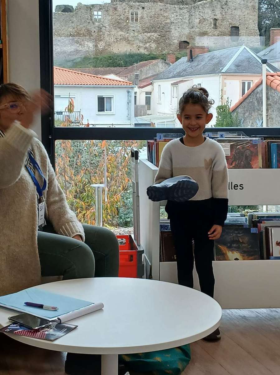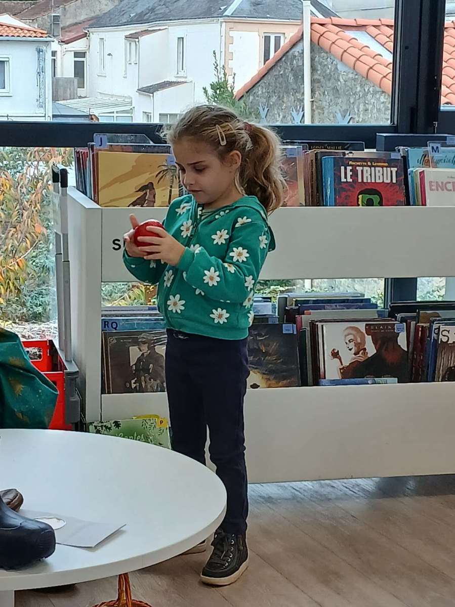 Sophie, l’animatrice, nous avait préparé un petit jeu. Dans un sac, elle avait caché des objets appartenant à des contes et nous devions retrouver leurs titres. Nous avons ainsi trouvé Blanche-Neige avec la pomme, Le chat botté avec la botte, Boucle d’or avec les trois bols et bien d’autres. Elle nous a même lu les contes de « Peau d’âne » et « Le roi et l’oiseau ». Nous avons beaucoup apprécié. Pour terminer ce temps à la médiathèque, nous nous sommes installés avec des livres.
