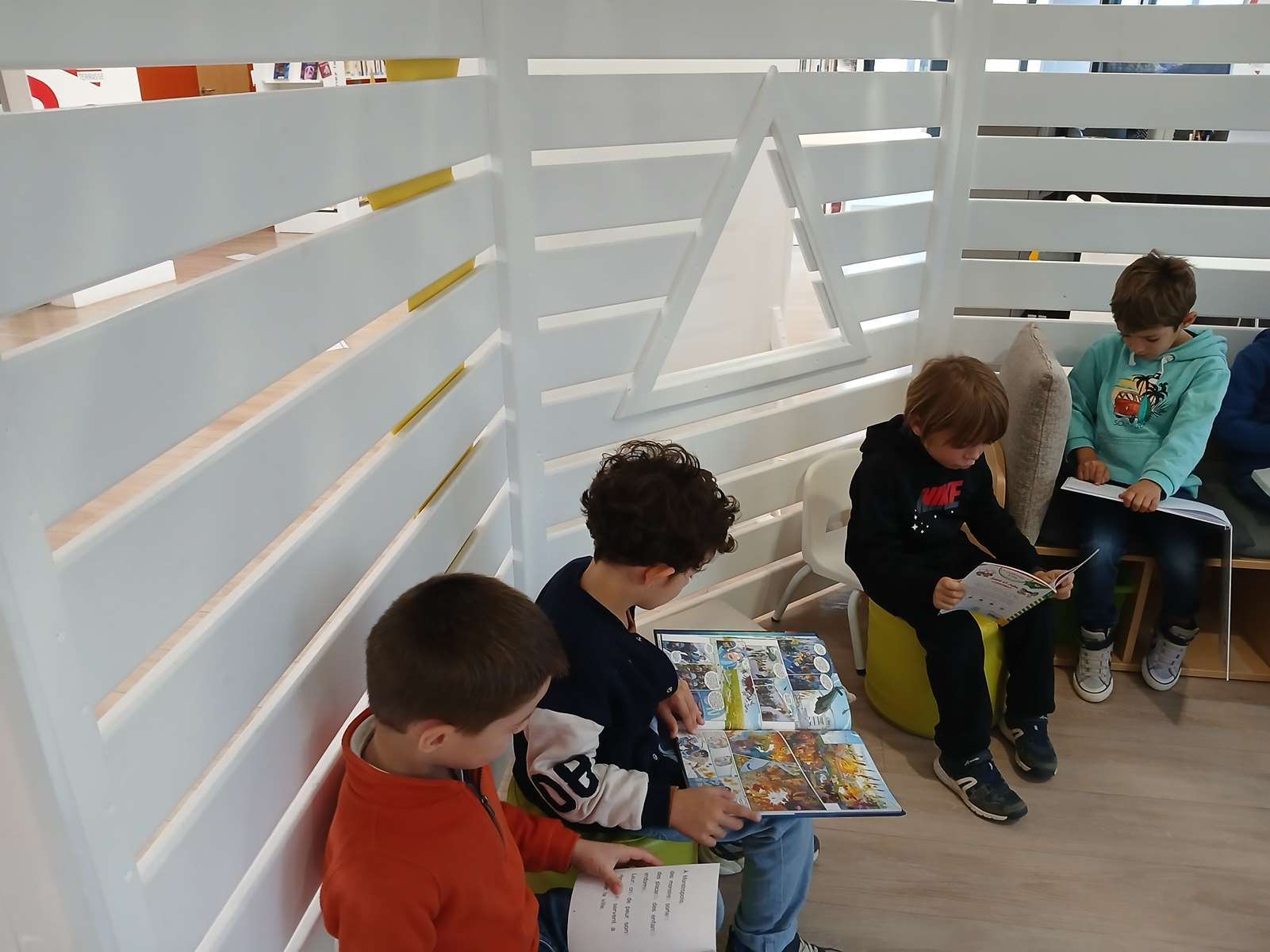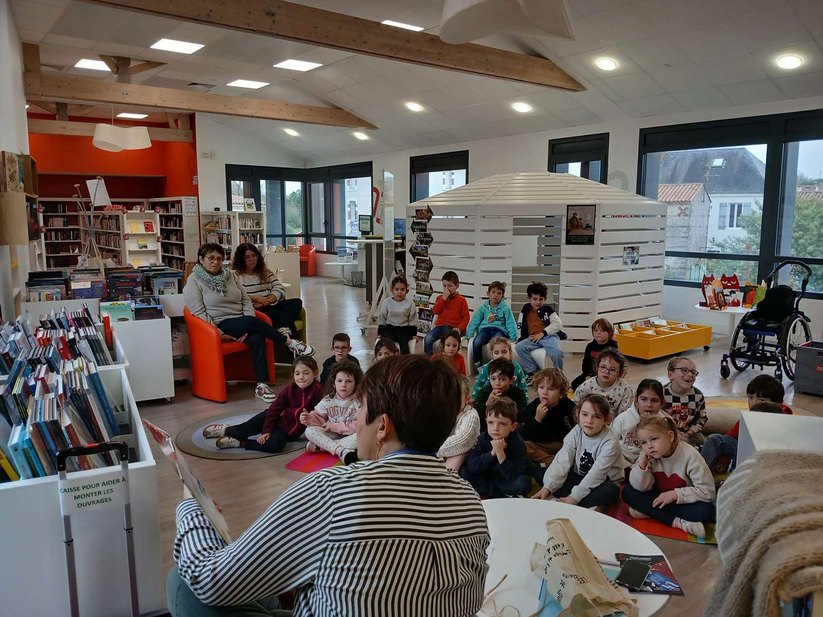 Vendredi 14 Novembre, la classe de CP a beaucoup marché pour découvrir la médiathèque. Certains connaissaient, d’autres ont découvert cet endroit plein de livres et autres documents.