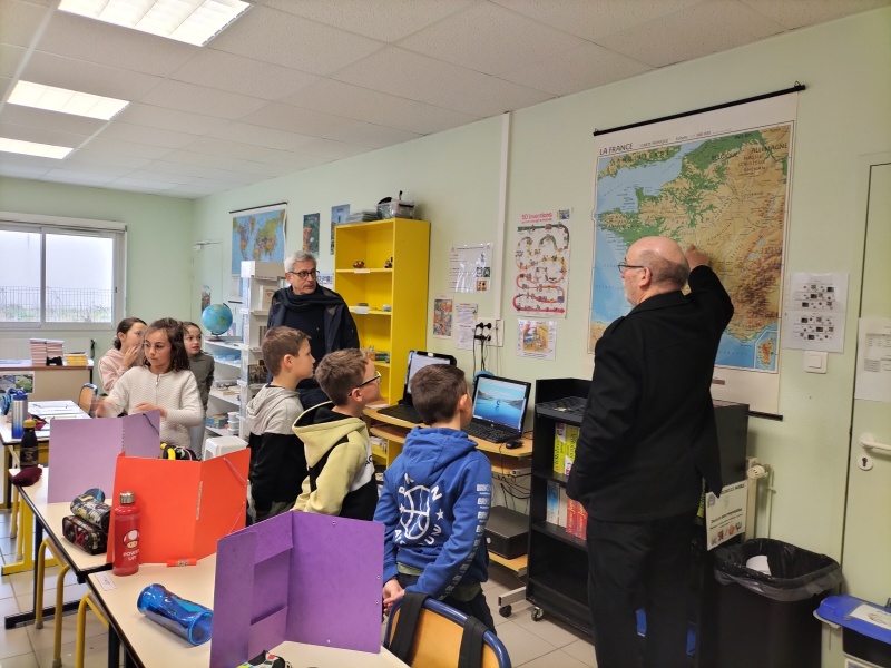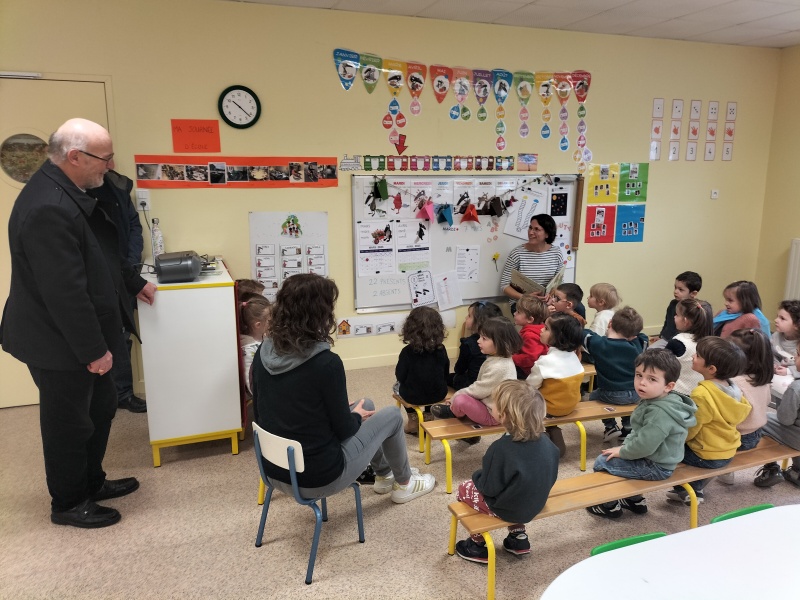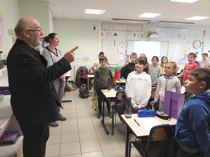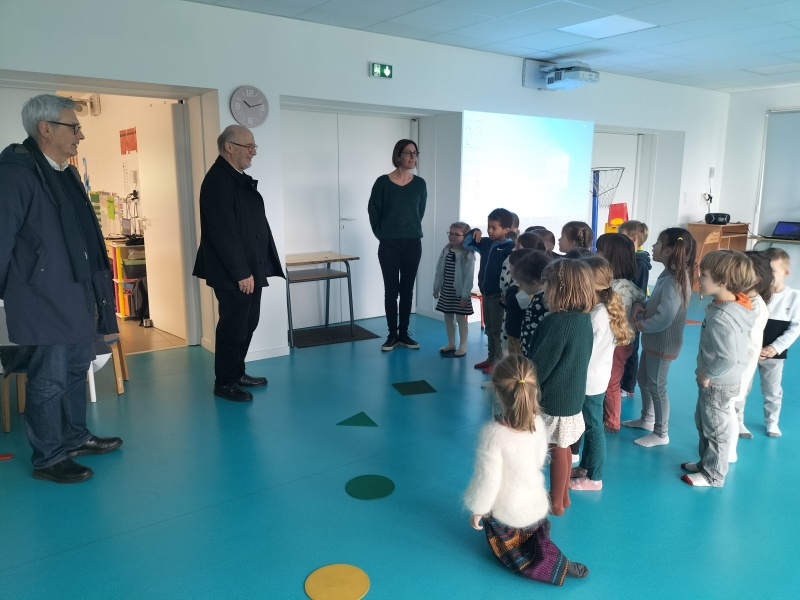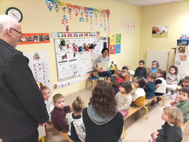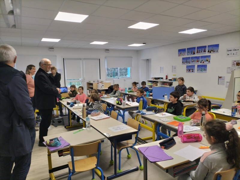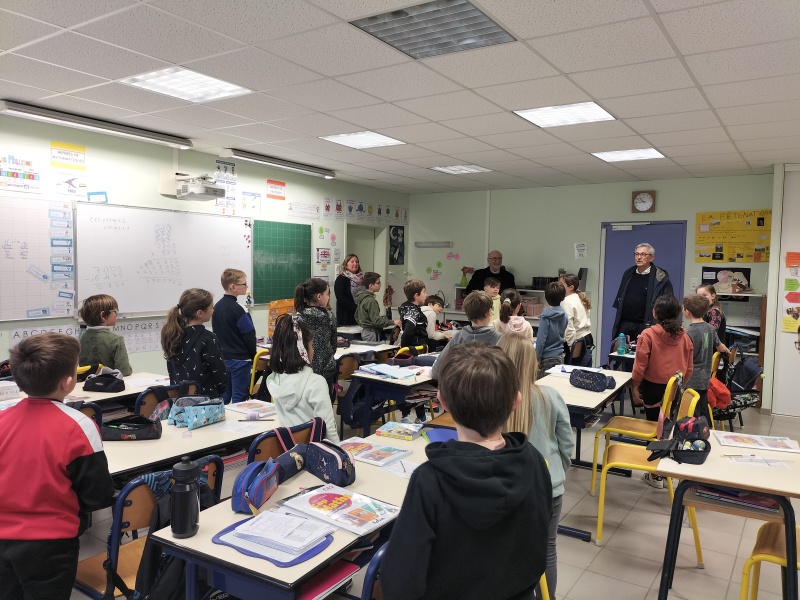 Accompagné par le père Daniel Archambaud, Mgr Jacolin a pris le temps de visiter chacune des classes et a répondu aux questions des enfants qui étaient très fiers de le recevoir!